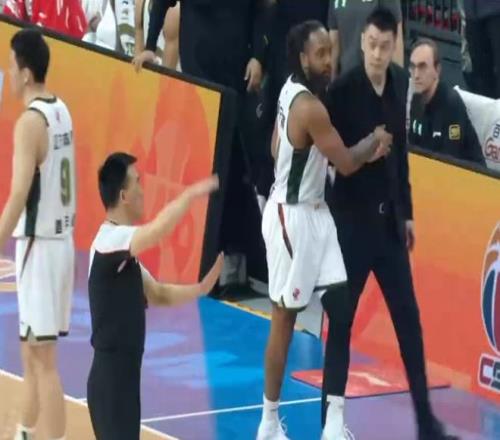 在第四节比赛进行到还剩6分22秒时,姜宇星抢篮板打中陈盈骏的脸部,裁判吹罚姜宇星犯规。对此,杨鸣极为不满冲过去理论叫板裁判,导致连续吃到两T被驱逐,辽宁外援韦尔斯也吃T。