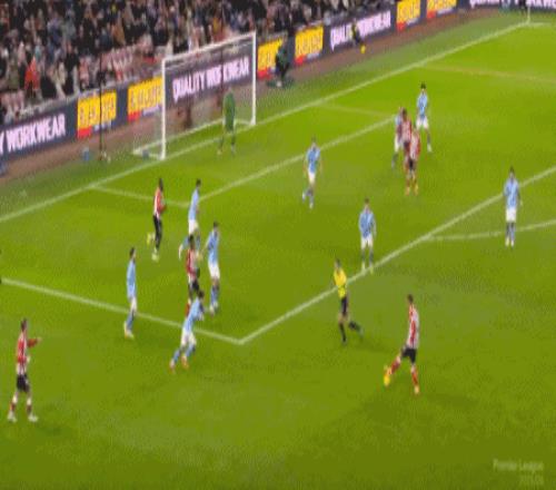 第91分钟,谢尔基右路强行突破,福登射门被封堵,格瓦迪奥尔近距离补射,又被桑德兰后卫在门线前解围出来。